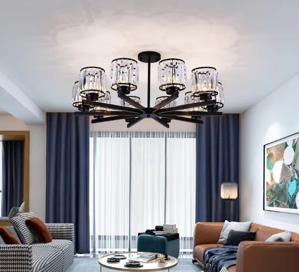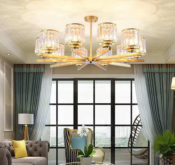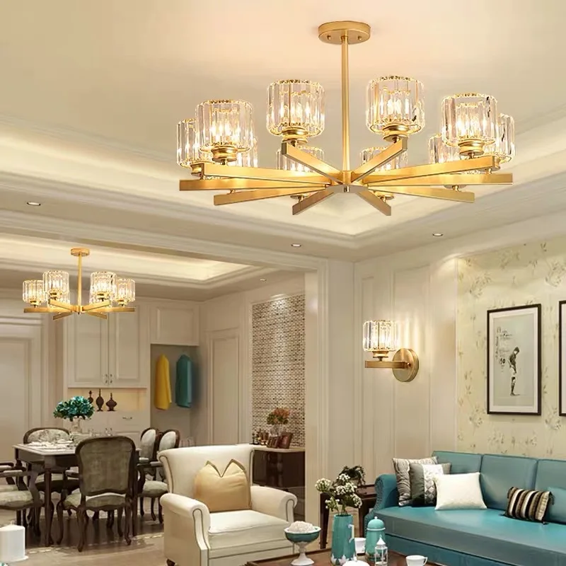 JACKSUN Luxury Golden LED Pendant Lamp Crystal Chandelier Euro Style Hanging Light for Living Room Bedroom Villa Hotel Home